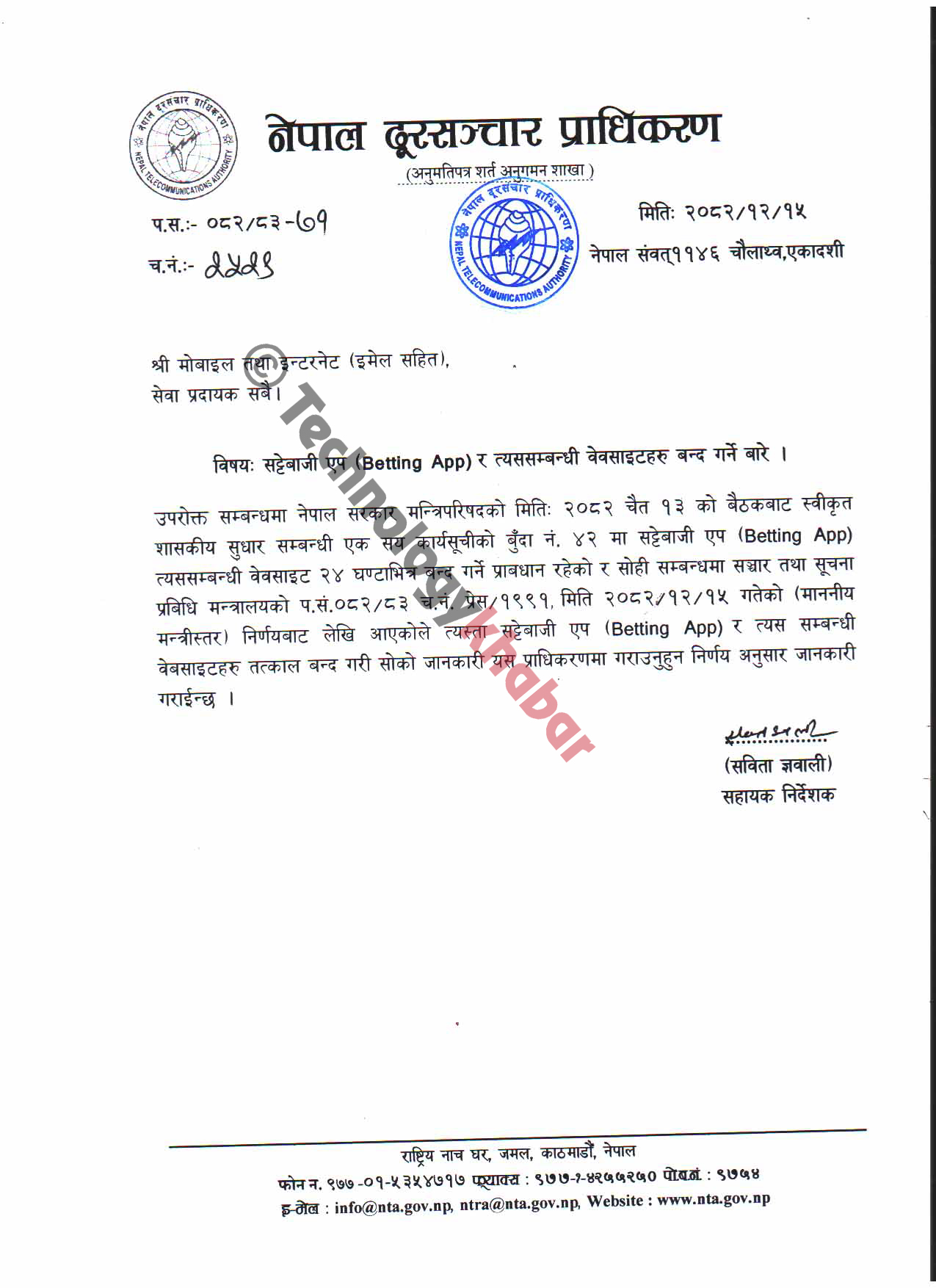 सट्टेबाजी एप र वेबसाइटहरु बन्द गरेर जानकारी गराउन दूरसञ्चार प्राधिकरणको सेवा प्रदायकहरुलाई निर्देशन